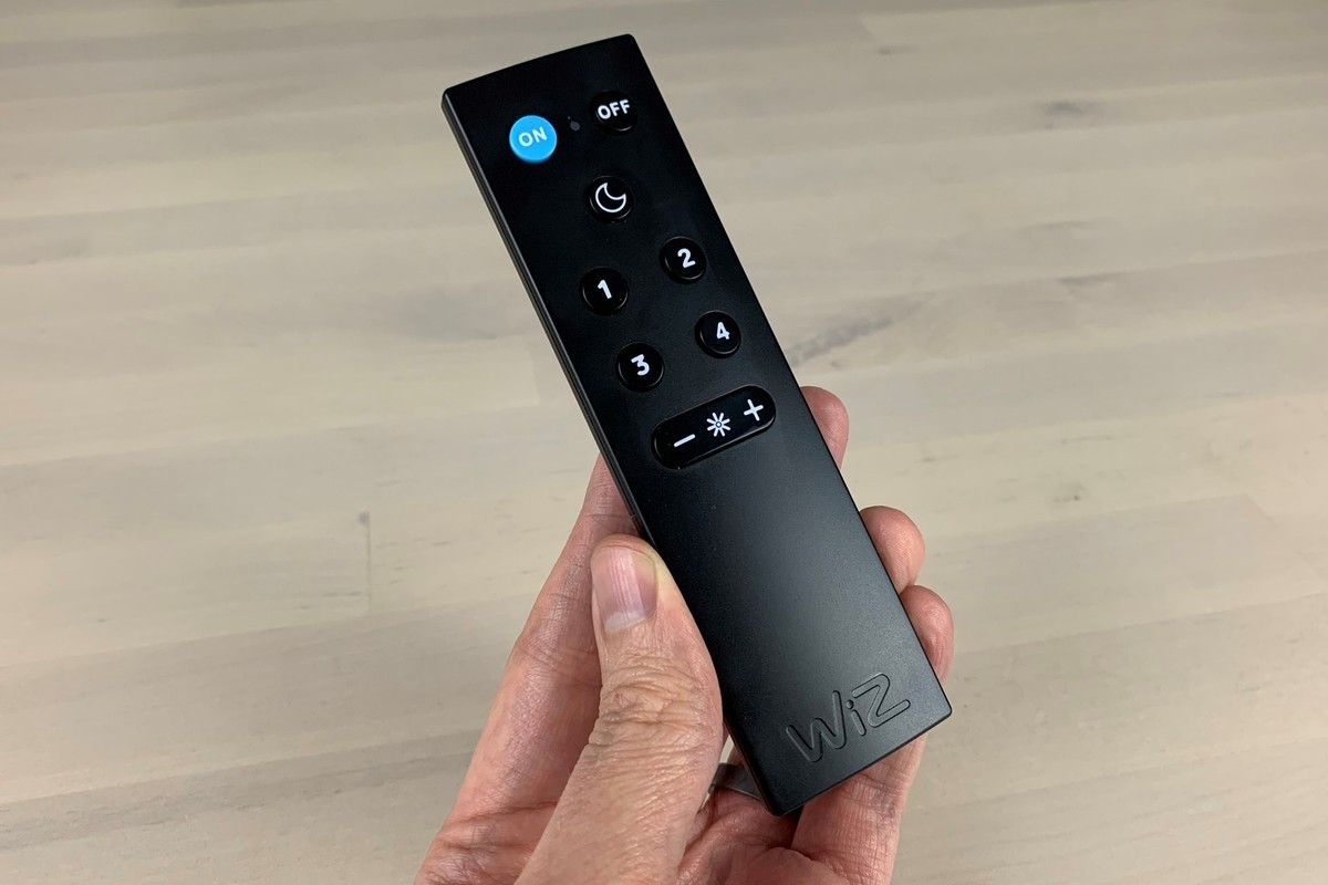 WiZmote Wi-Fi دارای هشت دکمه از جمله روشن و خاموش ، دکمه نور شب ، چهار دکمه مورد علاقه است. که می توانید با استفاده از برنامه تلفن همراه WiZ ، و حالت های روشنایی سفارشی سازی کنید.
